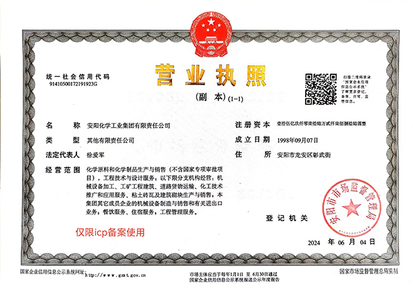 安化集團公司下屬20余個廠、子(分)公司,其中,獨立法人單位11個,公司及所屬單位注冊資本29.45億元,年產值80億元,主要產品20余種,涵蓋新材料、精細化工、多元化肥料等多個行業(yè)。主導產品及年生產能力為合成氨32萬噸、尿素47萬噸、復合肥20萬噸、乙二醇20萬噸、瓶級聚酯30萬噸、甲胺/DMF 16萬噸、保險粉10萬噸、氨水4萬噸、車用尿素5000噸、汽車防凍液及多元醇1.6萬噸、DMAC 2萬噸、甲醇鈉3000噸、食品級二氧化碳7萬噸、液體二氧化硫4.5萬噸、焦亞硫酸鈉4.5萬噸、甲酸鈉4.5萬噸、彎頭法蘭6千噸、粉煤灰蒸汽加壓砌塊25萬立方、利諾龍-a亞麻酸系列產品30噸、低氘水1700噸、氧18 140公斤、編織袋1500萬條。產品曾榮獲“河南省優(yōu)質產品”“國家免檢產品”等殊榮。其中,“豫珠”牌尿素榮獲全國氮肥行業(yè)金球獎。